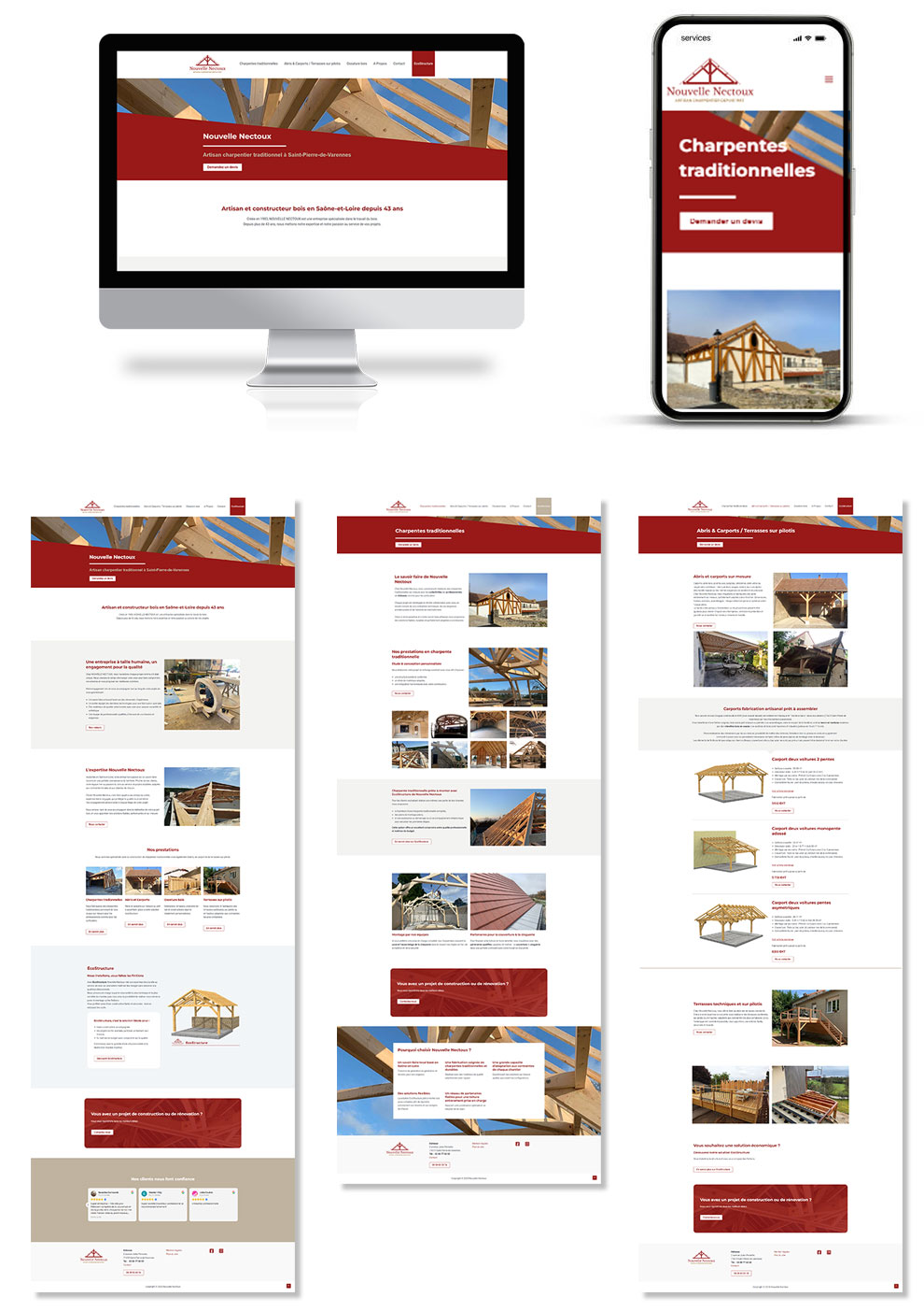 Objectifs : Assurer un accompagnement global en communication graphique et en conseil stratégique, en modernisant l’identité de l’entreprise et en valorisant son expertise en charpente traditionnelle.